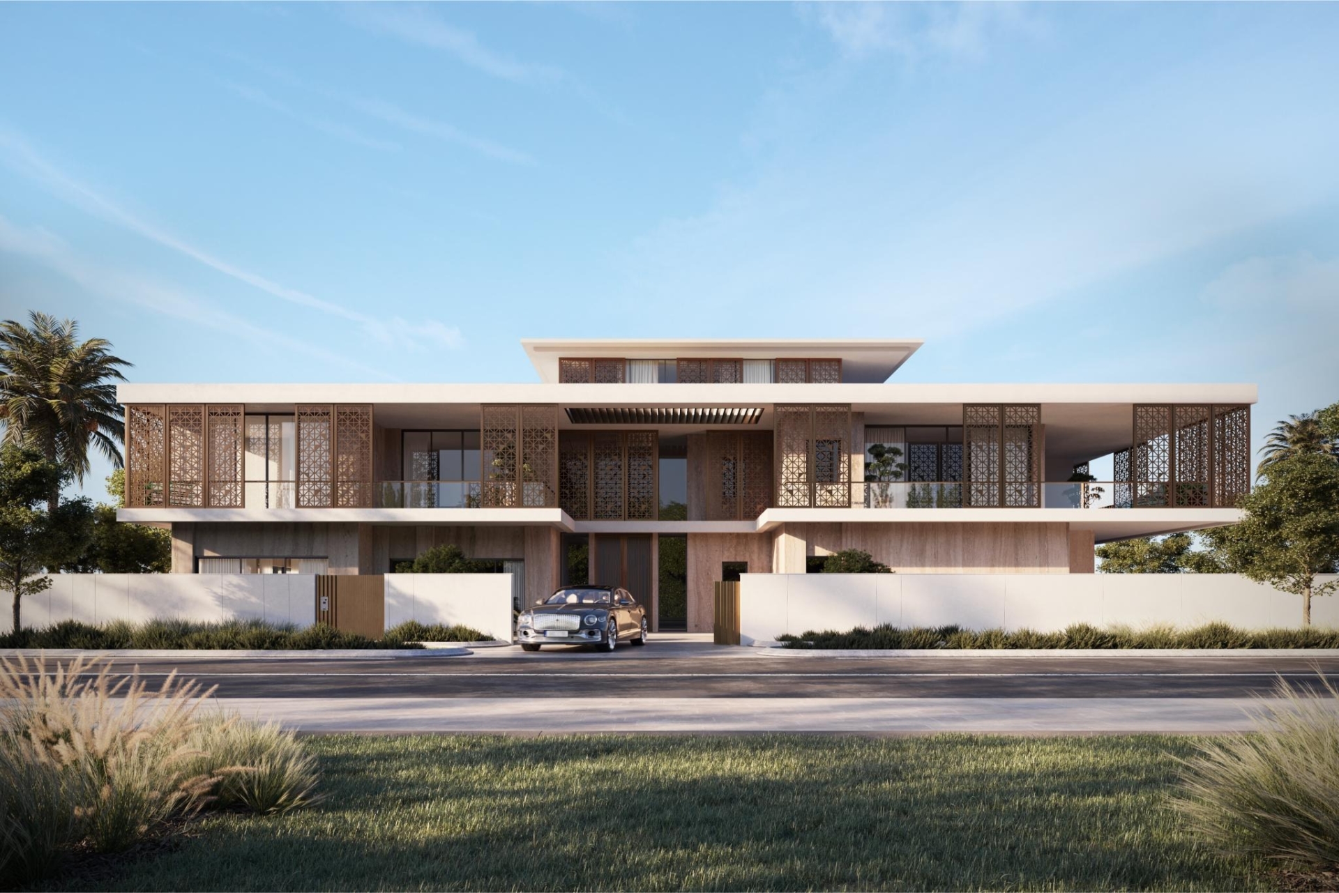 Innerhalb von Bashayer Villas gibt es zwei Villentypen: Select Villas und Shore Villas. Die Select Villas sind elegante 4-Bedroom-Villen mit durchdachter Familienaufteilung, großzügigen Wohn- und Essbereichen, offener und geschlossener Küche, Gästezimmer im Erdgeschoss sowie separaten Servicebereichen. Sie bieten viel Platz für Familienleben und Home-Office und eignen sich ideal als Erstwohnsitz oder hochwertige Ferienimmobilie. Die Shore Villas sind die prestigeträchtige 5-Bedroom-Variante – noch großzügiger, mit zusätzlichem Entertainment-Bereich, formellem Living, eigenem Fahrer- und Staff-Bereich sowie weitläufigen Außenflächen. Durch ihre Lage näher zur Uferlinie und die beeindruckenden Blickachsen auf Wasser und Skyline repräsentieren sie das Premiumsegment innerhalb der Community.