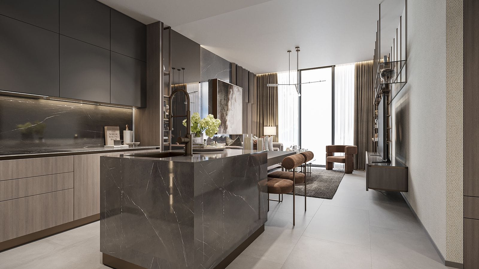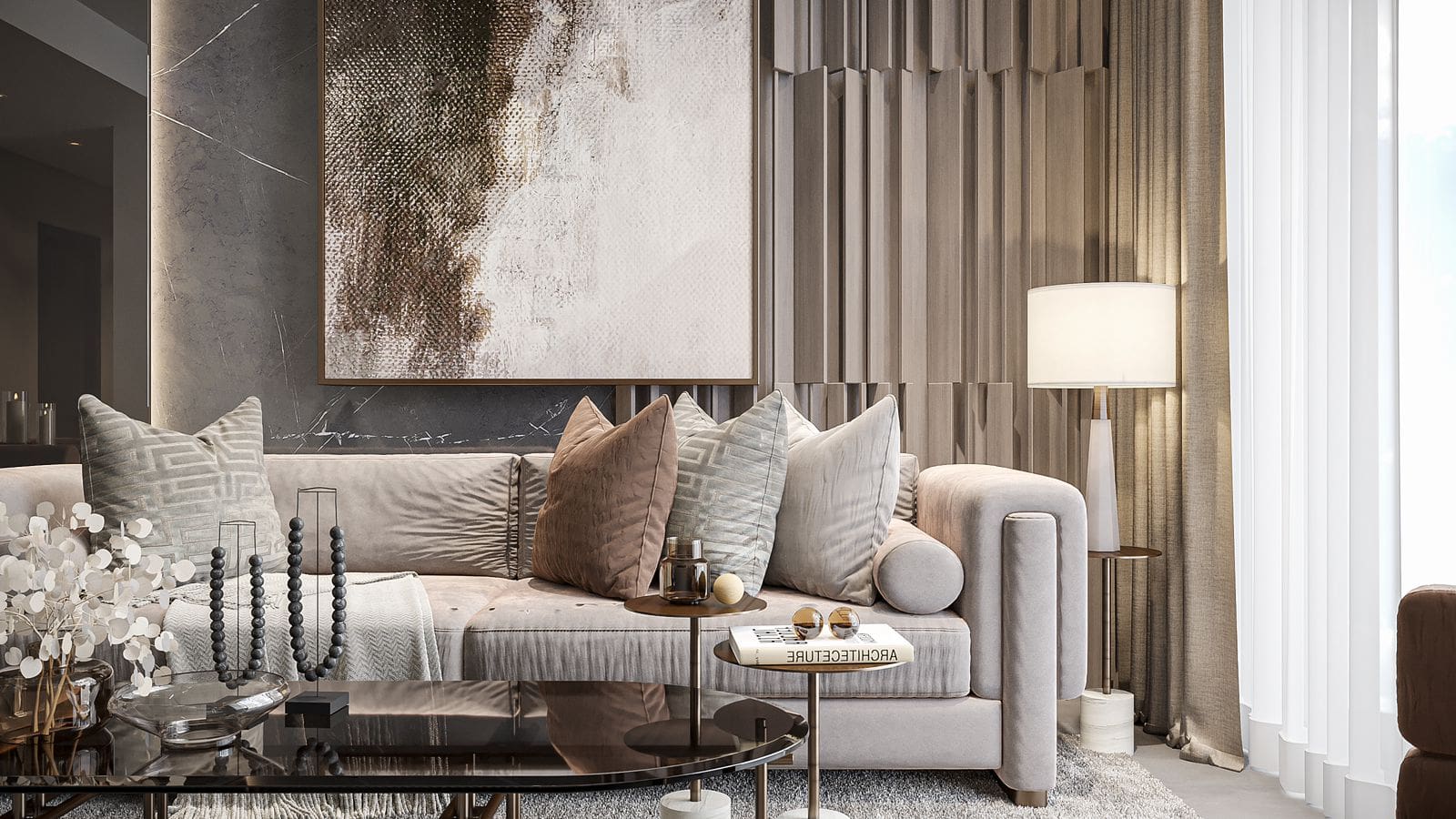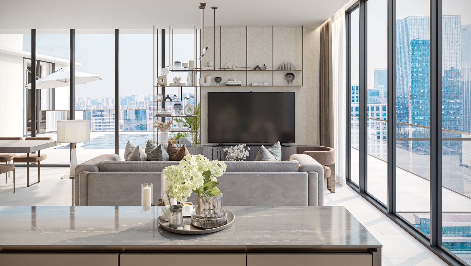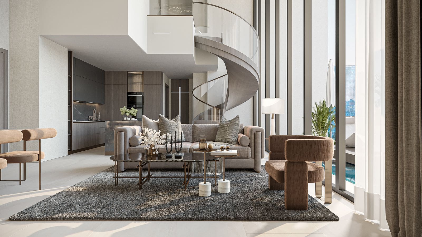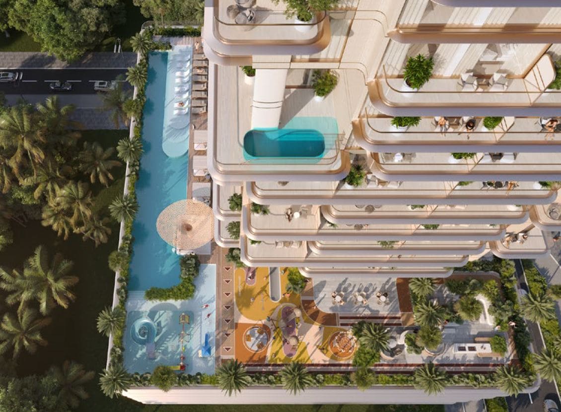 Dieser luxuriöse 24-stöckige Wohnkomplex verbindet die sanften Wellen des Wüstenlandes, die beruhigende Kraft des Wassers und die Lebendigkeit der Natur in einem harmonischen Design, das die natürliche Schönheit Dubais widerspiegelt. Die sanft geschwungene Architektur schafft eine Oase inmitten des urbanen Lebens, in der ein harmonisches Zusammenspiel aus Natur und modernem Wohnen entsteht.
